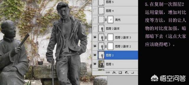 5、再复制一次图层2,运用蒙版,增加对比度。目的让人物对比度加强,暗部暗下去。