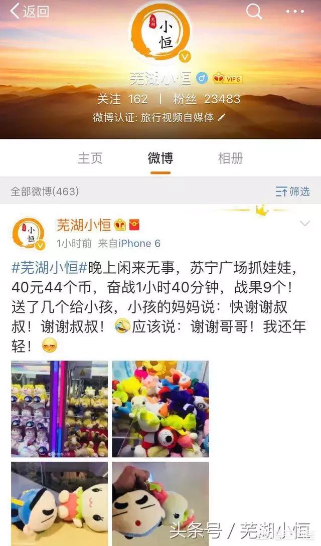 而且他抓到的娃娃,他都不要,送小孩了,大神啊!送一个给我多好!看的出来,芜湖小恒是一个非常不错的小伙子,人好!