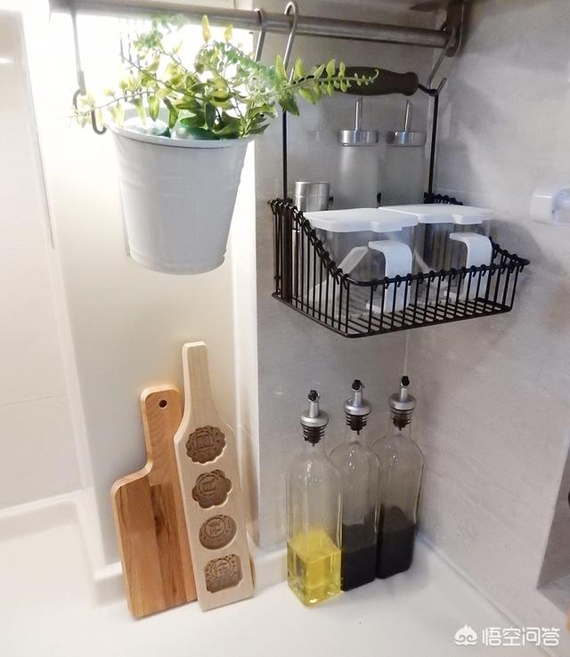 不锈钢或者木的调味架。把瓶瓶罐罐都往上放,整齐干净。
