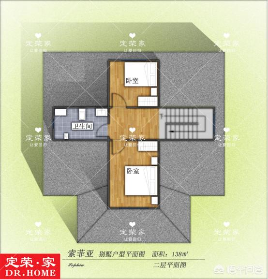 二层主要以卧室为主,共设有两个卧室,并在该层单设有卫生间,使在外奔波忙碌的家人们,回到家后能够拥有一个更加安静、舒适的环境放松,休息。