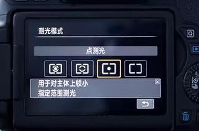 为了获得准确的曝光,最好使用“点测光”模式来进行测光;在机顶的测光模式选择按钮/转盘或菜单中进行设置都行。