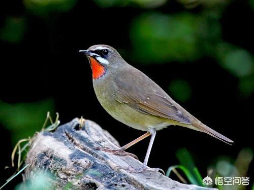 2 红喉歌鸲体长16厘米;重量16-27克,红喉歌鸲雄鸟体羽大部分为纯橄榄褐色,各羽中央略现深暗,亮红色喉部,眼上有一白色 条纹,雌鸟为白色喉部,眼上条纹为淡黄色。