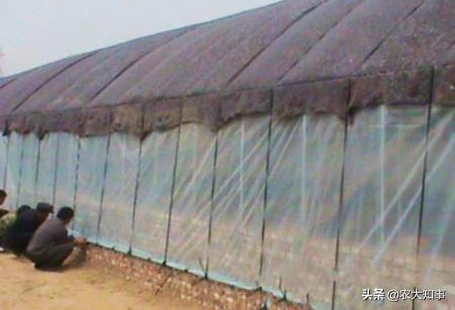 铁丝上再铺上一层纱网,网上面用毛毡或草帘子铺上,草帘子上再铺塑料布,塑料布上再用尼龙塑料绳进行固定牢固。草帘子或毛毡不需要铺到地面,距离地面大约1米多的位置,全部使用塑料布,这样便于清理粪便或通风使用。