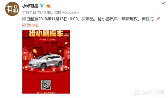小米和小鹏汽车一直有合作,就在最近的双十一期间,小米有品抽奖送小鹏汽车使用权。