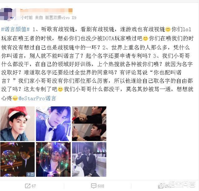 首先我们先来回顾一下缘由,这次的主角是王者荣耀的职业选手estar诺言!是kpl赛区的一位顶级上单之一,但是在这次estar官博的发表文中,出现了辣个男人这个梗!而且这名选手的id也叫诺言!于是乎!蹭热度就成了这场骂战的开端!