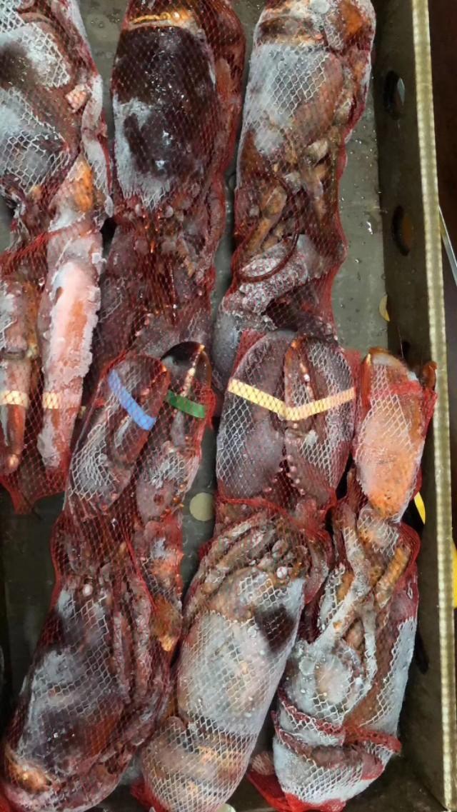市面上波士顿龙虾分两种,一种是冷冻的,就是捕捞上来,直接冷冻的,一般表面都会有冰,保证龙虾不能在冷冻室脱水,口感超差!价格在60左右一斤。如图所示