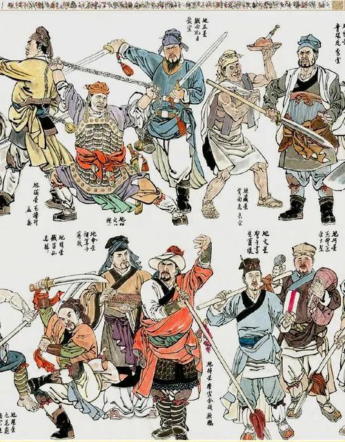 二、其次是梁山好汉,本身的人员组成和阶级属性。从一百单八将出身来看,有以宋江为首的大宋认命的吏(官),有以卢俊义为首的大地主大商人(商),有以吴用为首的不得志的文人(士),有以有以林冲为首的被陷害的武装(兵),有以鲁智深为代表的僧道(三教九流),有以孙二娘为首的小商业小生产者(五行八作)等等,但遍观108将里,没有出身底层的农民,阮氏三兄弟是渔民。因此,严格意义上,梁山好汉们不是代表农民利益的农民起义,也就不是替底层劳动人民行道的代表。