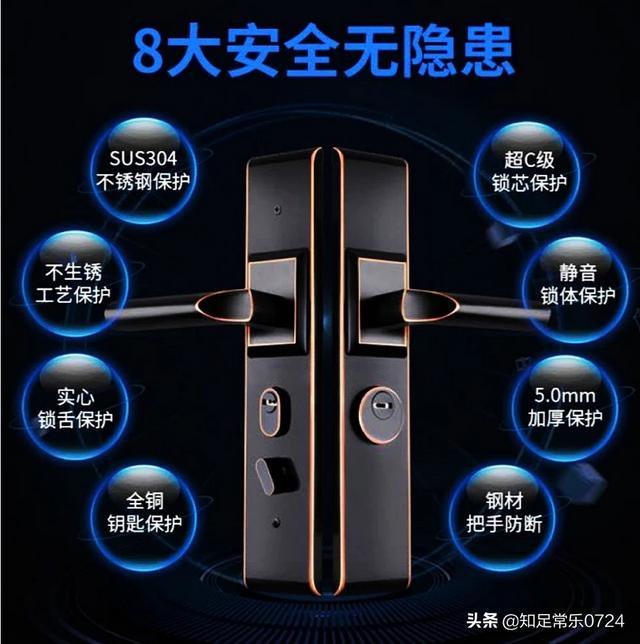 - 如果家里安装的是半自动指纹锁,锁体方条孔位置一定要选择真材实料,尽量翻调位置,选择304实心钢材。锁芯位置只要选择全钢就可以,因为半自动指纹锁锁芯位置属于应急所用,平时根本不用。