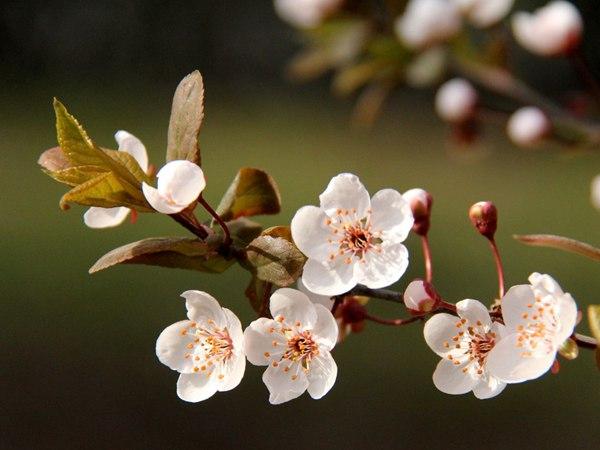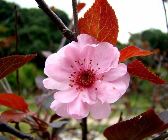 红叶李的花为单瓣,花径较小,无香味,花叶同放;