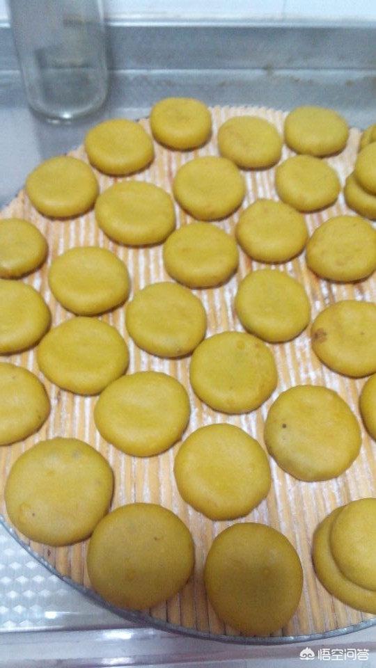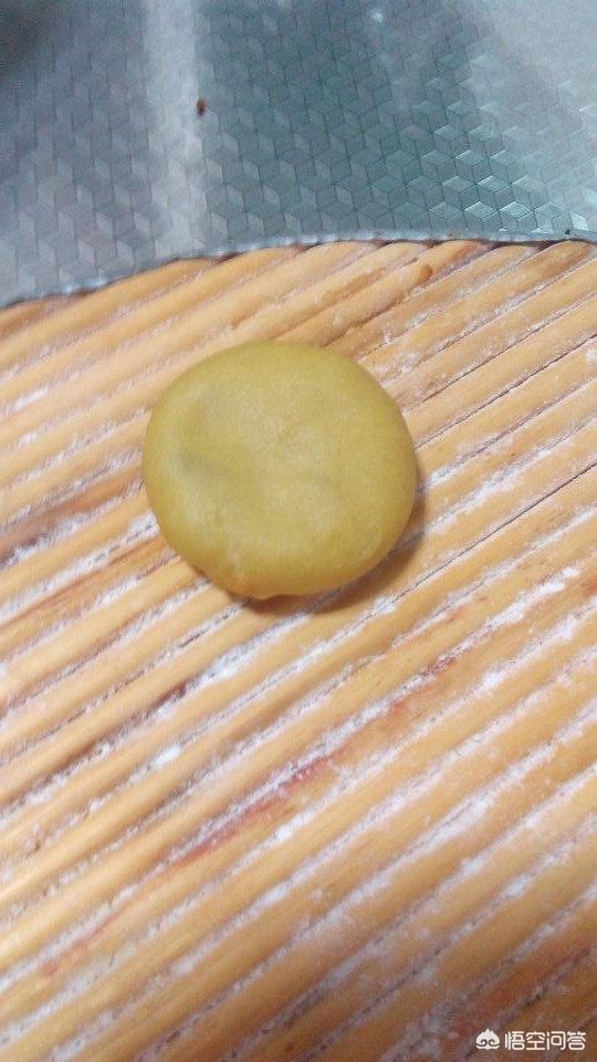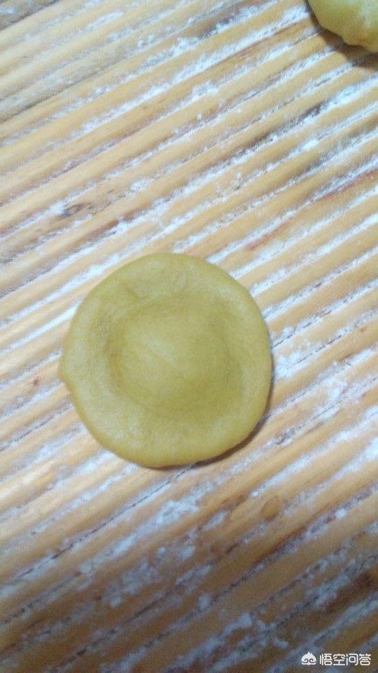 9.用手捏成中间稍薄,中间厚的小圆片。
