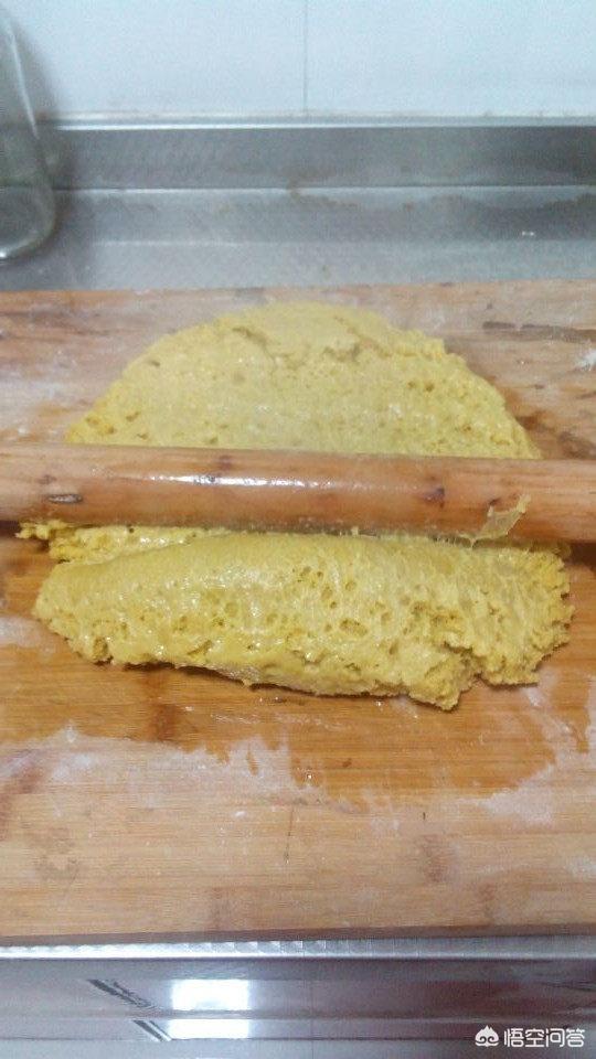 3.黄米面蒸出来又烫又粘,所以要案板和擀面杖要抹油。
