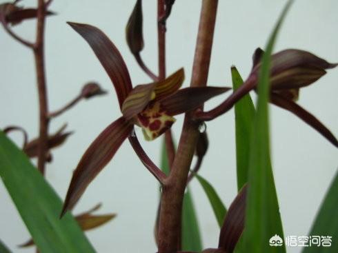 墨兰,又叫报岁兰。花苞小,呈淡褐色,花茎通常都要高出叶面。墨兰开花之后,为保持植株美观,可减去花剑,也能减少营养流失。然后治愈室内明亮处保持正常光照,夏季避免阳光直射,以免晒伤引起叶片发黄!