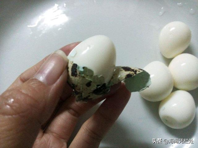 蜡要用热水冲烫。蜡一遇热就融化,水表面会浮起一层蜡膜。只要及时倒掉热水,不让蜡再重新糊在鹌鹑蛋上就行。