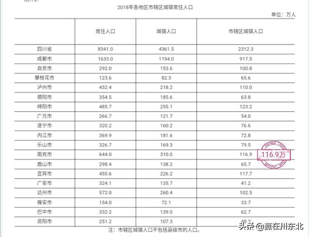 2018年南充市公共财政预算收入113.9亿(差36.1亿),地区生产总值2006.3亿(超506.3亿),市区常住人口在116.9万(差33.1万),也就是说目前三个指标只能满足一个。