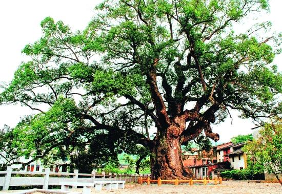 樟树常绿大乔木,呈圆形树冠,全株散发樟树的特有清香气息.樟树可作行道树、庭园树,可制樟脑油. 宁波古樟树 宁海前童竹林村古樟树,巨枝五叉分开,如五条虬龙盘旋而上,人称“五叉樟”.据考证,此树年龄在1200年至1500年之间.树高18米,胸围15米,为国家一级保护古树,有“浙江第一古樟”的美誉.