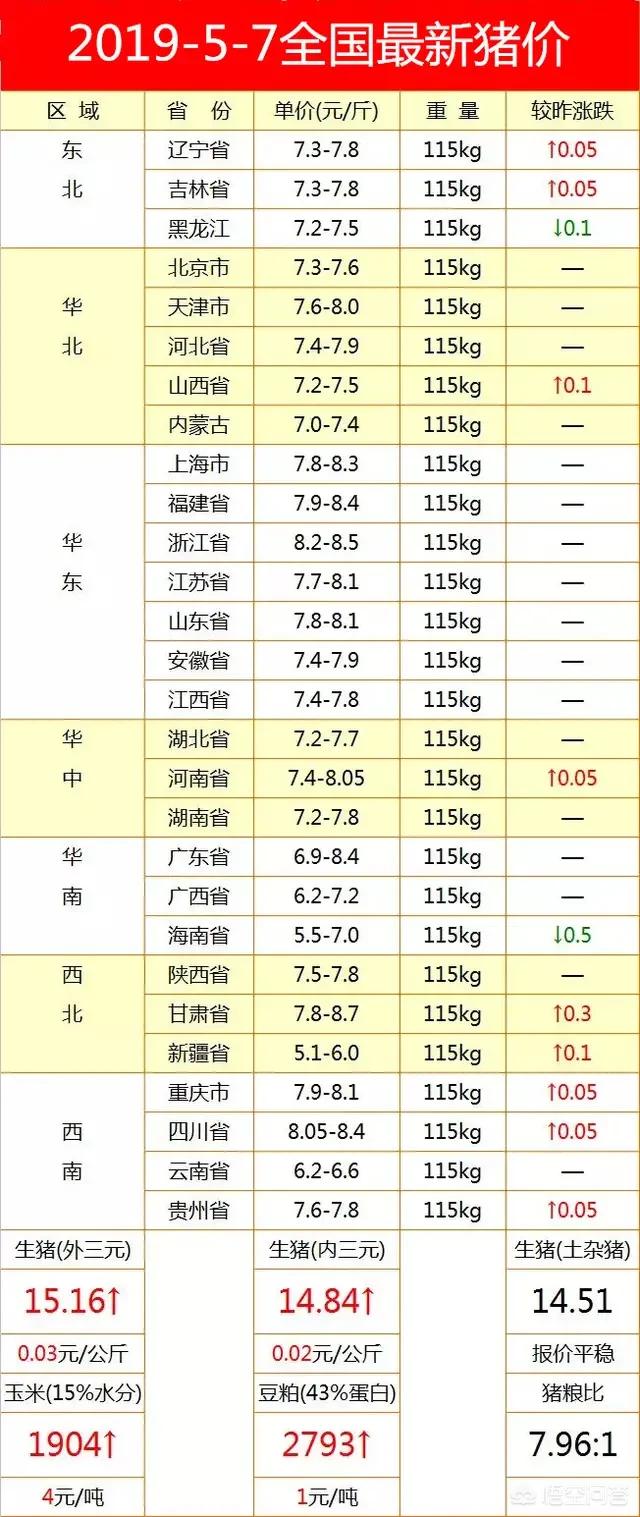 一、从当前全国市场猪价看,总体走势稳中有涨,虽然涨幅不大,但经过几天的连续小涨,但是生猪价格已经来到了每斤7.58元。由于4月份以来,广西、新疆、云南、海南等地先后发生非洲猪瘟疫情,再加上这些地方产能相对其他地区较多,在猪价持续下跌的过程中,一些养殖户处于越养越亏的境地,个别地区出现抛售现象。截至5月7日,新疆生猪价格最低,每斤5.1~6.0元,海南省每斤5.5~7.0元,广西省6.2~7.2元,云南省每斤6.2~6.6元,这只是各地的报价,但从各地的实际情况看,有的广西、新疆等个别地区已经跌破5元。