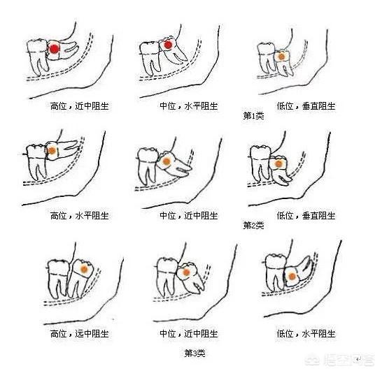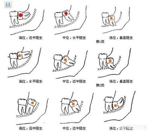 对于我们大多数人而言,智齿长的位置特殊,几乎都是萌出不全或者完全不萌出,出现各种的错位倾斜,我找了一张图,你可以对照看看你的智齿有没有如下情况,就是这些位置不正常的支持,逐渐会出现不是,导致各种问题发生。
