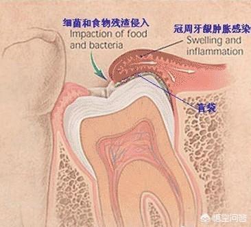 例如:智齿的牙冠周围易积塞食物残渣,滋生细菌,造成智齿冠周炎;