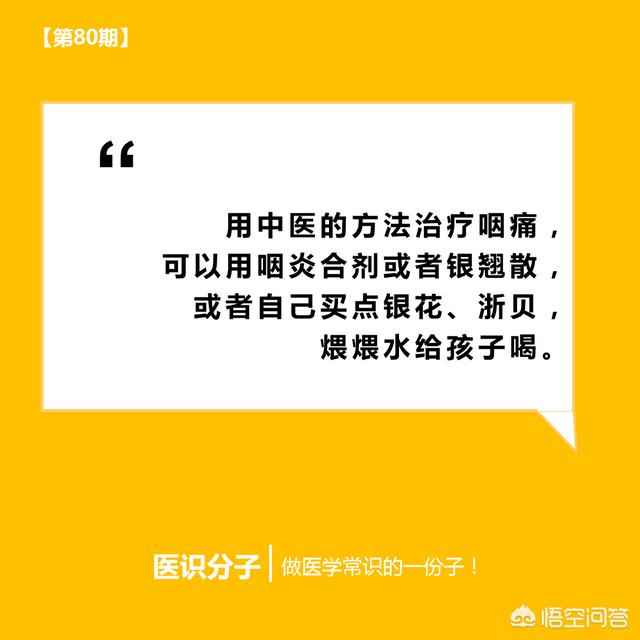 而是用中医的方法,可以用什么成药呢?咽炎合剂或者是银翘散,或者自己买点银花,买一点咸参,买一点浙贝,煨煨水给孩子喝,买点板蓝根给孩子喝。这个就是治疗咽痛的。