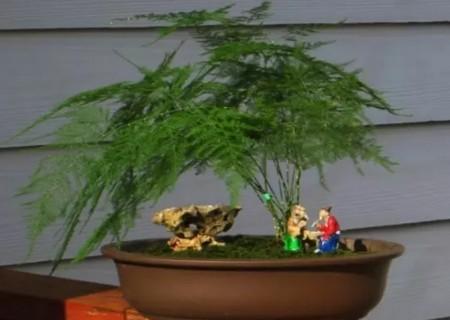 如果是长的太大了的话,可以将老的文竹老的枝条修剪掉,留下底部的小侧芽,让它继续生长,这样,又是一盆新的文竹微型盆景