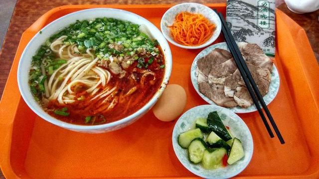 不得不说一下我大兰州的“牛肉面”!不叫兰州拉面!兰州牛肉面!就叫牛肉面!!我最最喜欢“细的”,跟牛肉面师傅说细的他会懂的,感兴趣的朋友可以把牛肉面从大宽,二宽,韭叶子,二细,三细,细的,毛细都吃一遍感受一下。兰州的牛肉面大多以“马XX(回族人多姓马)牛肉面”命名。出了兰州,各种所谓“正宗”兰州牛肉拉面大多是青海的回族开的,而且面馆里面各种烩面、拉面、盖浇面、拌面甚至还有新疆特色菜丰富多样!牛肉面的汤底是用牛肉高汤,而我吃到的所有标榜“正宗”的都是味精水。面里面加入蓬灰使得更劲道有嚼劲,而我吃到大多数标榜“正宗”的面嚼着嚼着在嘴里能拧成一坨。捞出来的面,浇了牛肉高汤后,撒蒜苗和香菜,再泼一两勺辣子油,这里的辣子油真的是精华,不算辣但是特别香,我吃过所有标榜正宗的的牛肉面几乎不提供辣子油,只有碾碎的干辣椒,那辣得……上面这些我都忍了,你在牛肉面里加榨菜、酸豆角、油菜、油炸蚕豆是什么鬼!!