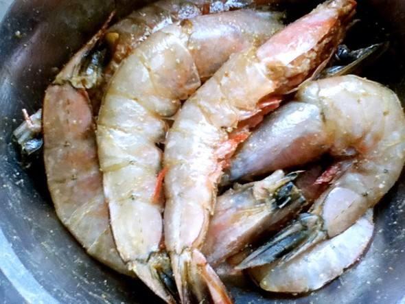 (3)虾去头和虾线后也腌一下。