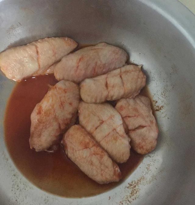(2)用料酒、盐和黑胡椒碎腌一下。