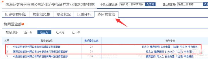 这是东方财富龙虎榜回测的协同营业部,数据显示最近3个月有两个营业部神同步地一起上榜,单单凭一起上榜次数多还不能确定什么,但是我们可以通过他们的操作方式来看。