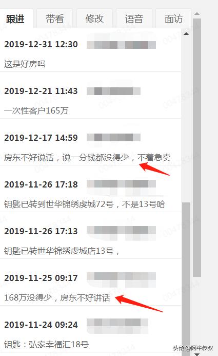 不管是卖房,还是买房,你只要在中介登记了,谁打电话给你,态度稍好一点,这样可以体现你的素质,因为你说的每一句话,平台都会录音,很多纪经人打过电话之后会备注基本情况,如果说你不太好说话,他就会在平台上备注房东的大概情况,我截了几个图,态度好的中介都会相互传达多推推,态度不好的,之后几乎就没人帮他推了,毕竟大家都不想和难打交道的人来往。