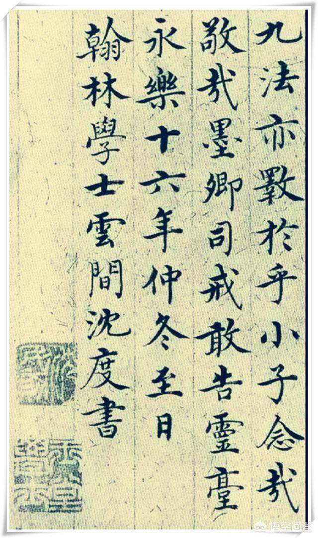 当然这种考试不是考行草书法,而是考正书,实用性的。比如唐代国子监有书学博士,科举考试要考书科,就是写字。士子在登科之后,吏部选拔官员的时候还要进行书法等级考试。这种制度下的正书到后来,逐渐演变成为著名的“馆阁体”(也叫台阁体),附图为馆阁体代表人物沈度的楷书。