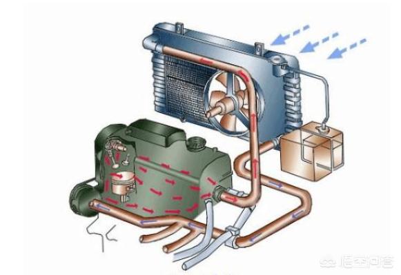 发动机的冷却液水箱是“高温件”,其作用在发动机运行中利用冷却液的循环流动从缸盖循环流动吸收热量带走高温,冷却液流进前部的散热水箱后通过风扇和自然风为冷却液吹风降温。