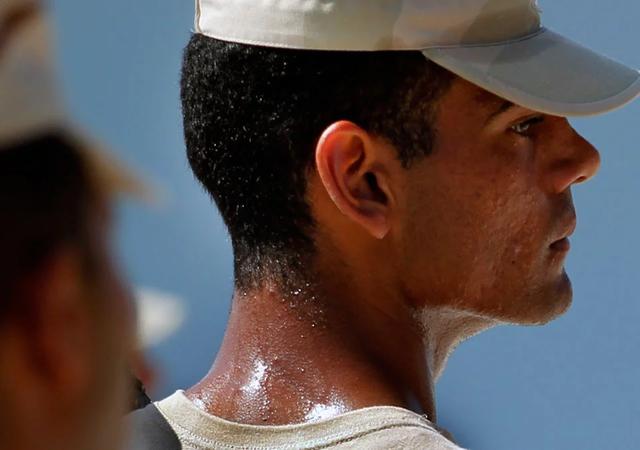 红日当头照,汗水身上流。