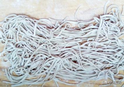 和荞面时都要在里面少放些白面,这样做成的荞面比较筋道,也不容易断,我是用温水和面(大约50度),和好后放半小时即可