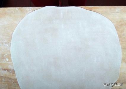 步骤三:面团放在案板上擀成面皮。