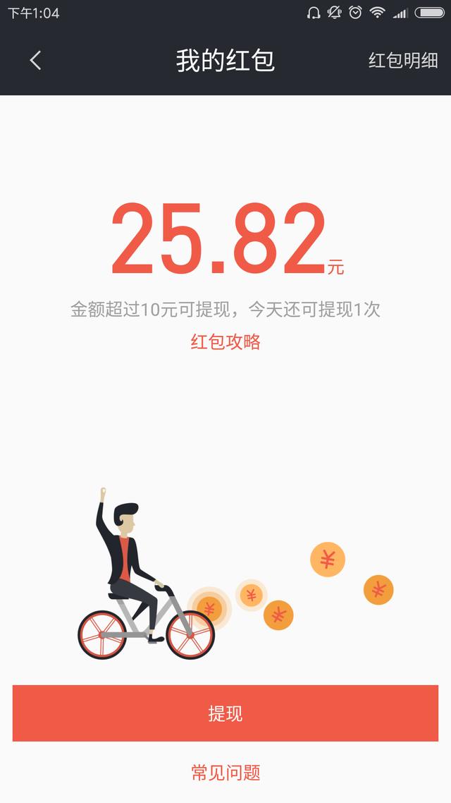 我骑摩拜单车最大的红包