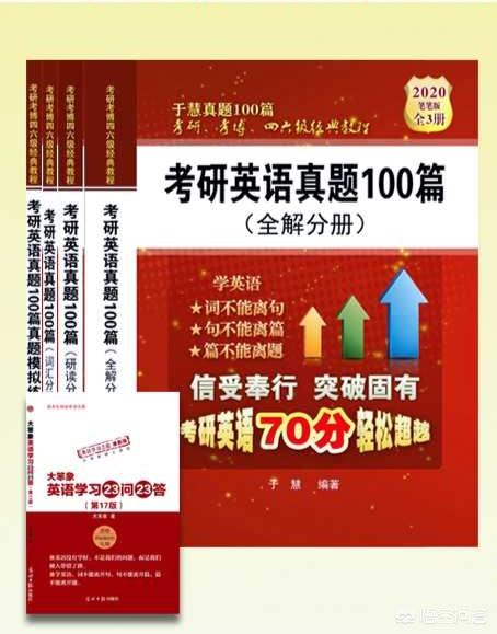 1.《于慧真题一百篇》,这个里面的试题是分题型进行罗列的,最主要的就是阅读,考研英语最重要的就是拿下阅读,得阅读者的天下,分数比重大难度也大。这一套书对与阅读中的每一句长难句和每一道题都有非常详细的讲解,很适合底子比较差的同学使用,自己不会翻译和不理解的句子都可以在这套书里找到答案,我觉得这一套书应该是市面上的考研英语中讲解最详细的一套书了,底子很差的人依然可以看得懂。(买了这一套书没有必要再去买单独的长难句讲解的书籍)