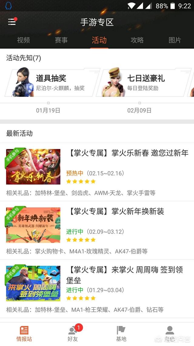 - 各种活动包括兴趣部落、应用宝、掌火、腾讯视频、企鹅电竞、心悦俱乐部。里面找到相应的CF手游专区就会看到。目前我就知道这些第三方活动。