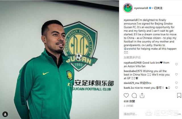 目前国安的三个外援 韩国的金玟载和两名归化球员 延纳里斯,侯永永,其中延纳斯里这名曾经阿森纳青训出来的球员值得关注,先后效力过诺茨郡,伯恩茅斯,布伦特福德。在布伦特福德的表现较为突出,延纳斯里球风硬朗,防守比较强悍,灵活有速度,很适合国安的攻守平衡战术体系