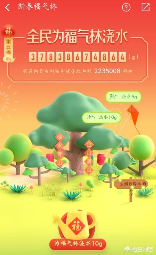 方法三:打开支付宝,进入蚂蚁森林,选择最左上角的福气林,点击浇水,也可以随机获得福卡
