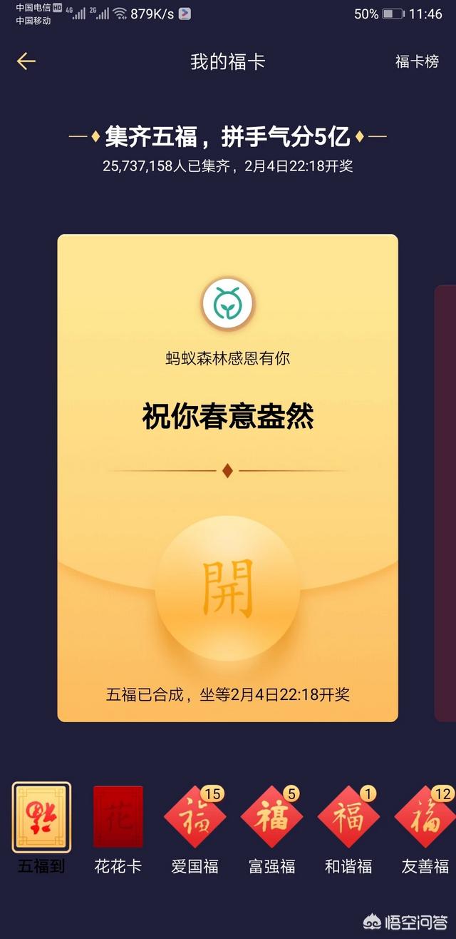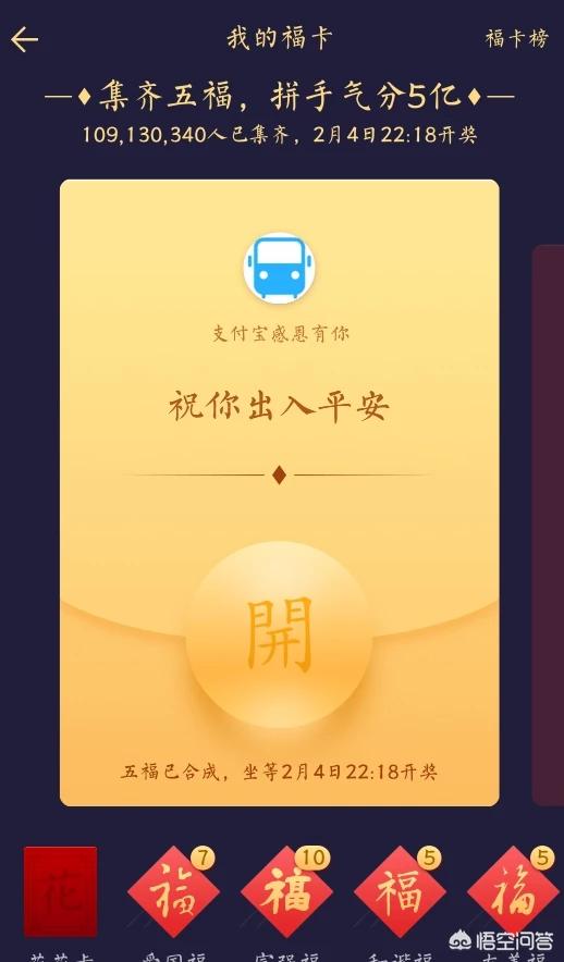 五福已集齐,但是唯独扫不到花花卡,用沾福气卡也沾过好几次,都没有沾到,难度比较大。