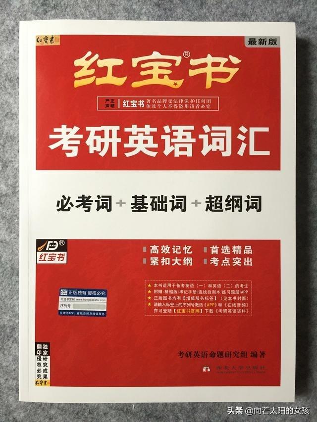 我考研一战二战一直用的 【红宝书】考研英语词汇(必考词+基础词+超纲词),释义很详细,但又不拖沓,可以看出是经过筛选的,每天一个单元,三天一回顾,七天一复习。