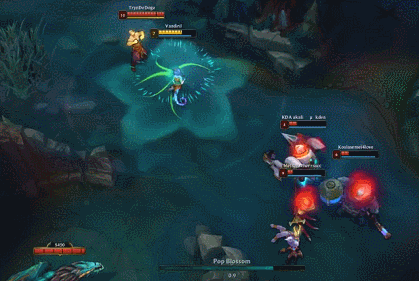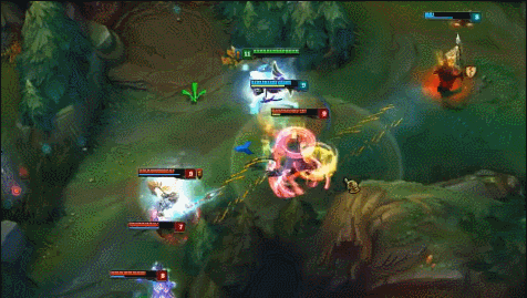 从天而降,宛如天神下凡,落地震飞敌人,拯救队友,超级英雄登场。当年,faker大魔王一拖四,大战RNG五局,可是把这个英雄的功能,发挥的淋漓尽致!发条魔灵——冲击波