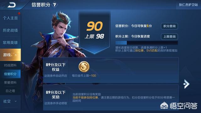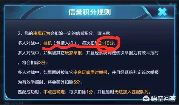 挂机就扣信誉积分,低于90分不能打排位,低于100分不能打巅峰赛。