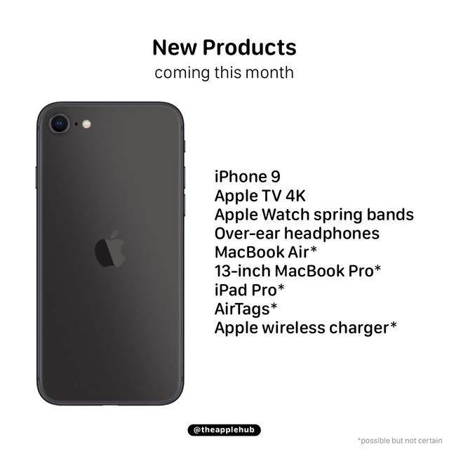 根据已有的传言来看,今年的春季发布会中,苹果会发布新的硬件产品,包括但不限于新的iPad Pro,iPhone 9,AirPods,甚至可能会发布Mac。