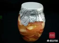 密封罐底先放白糖,再放苹果。(密封罐要用开水烫五分钟消毒,然后晾干)
