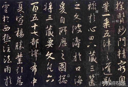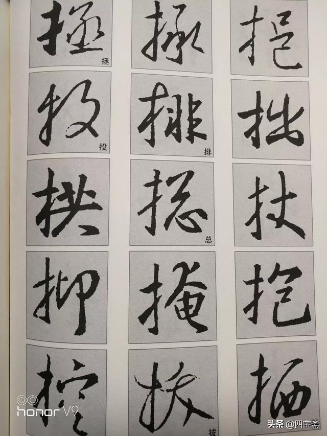 读帖过程中怎么个归纳呢?其实很简单,就是把相同的偏旁部首弄在一起,然后再把借(代)用的偏旁部首弄也在一起,找出其中的异同,你说说,当我们把这些准备工作都做好了,心中有数了再提笔写,这时要解决的就只剩技巧了,所谓熟能生巧,也只是个过程而己。如《圣教序》中"也“字的弯勾的变化,