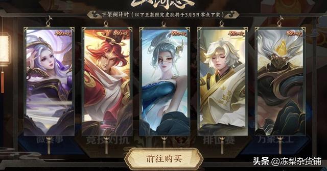 根据王者荣耀最新消息显示,本年度鼠年五岳限定皮肤将会在9号下架,有兴趣的玩家可不要错过,不然只能等到明年了。