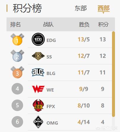 从春季赛常规赛我们可以看到,we的状态在世界赛之后差的不谈,除了中单兮夜状态不错之外,其他位置的状态似乎都不太好,而且相对于东部,西部的队伍实力应该是弱一些的,就这we也仅仅是排在第四的位置,勉强进入了季后赛,所以we状态堪忧,难以胜出。