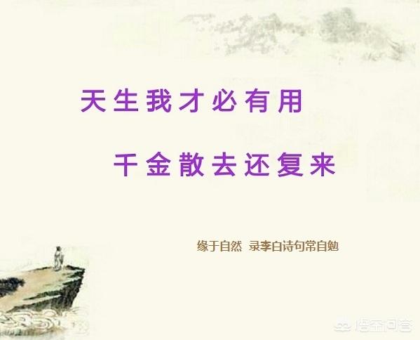 谢谢邀请。 李白的《将进酒》名句: “天生我材必有用,千金散尽还复来”,已然成为我在人生遭遇波折之时,经常用来宽慰和激励自己的座右铭。