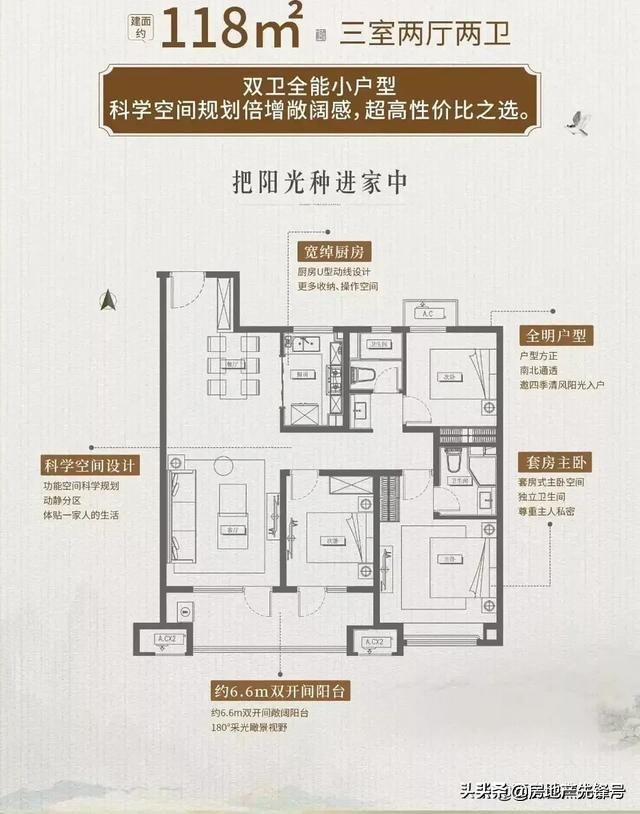第一,这是一个成熟的经典户型。南向面宽大,客厅加两房南向,且客厅与次卧带大阳台。